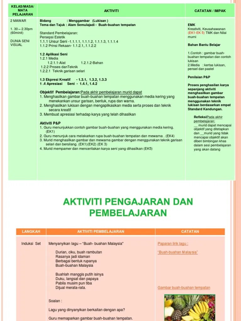 Lukisan buah buahan tempatan dengan oil pastel krayon ppt dan pat tahap 1 2 pendidikan seni visual lukisan buah buahan tempatan tahun 4.